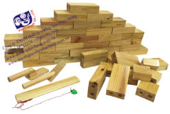 Vật liệu bằng gỗ sơn màu đỏ, bề mặt phẳng, không sắc cạnh, đảm bảo tiêu chuẩn an toàn